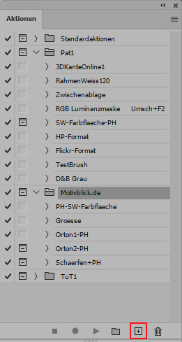 Hier solltet ihr nun den Namen der neuen Aktion eingeben. Und wichtig ist die Angabe eines eigenen Satzes. In einem Satz werden einzelne Aktionen abgelegt die ihr im laufe der Zeit anfertigt. Also nicht den vorhanden nutzen der bei Photoshop schon vorhanden ist. Das hat den Hintergrund das eigene Aktionen nicht einzelnd gesichert werden können sondern nur der ganze Satz. Beim Klick auf Aufzeichnen geht es dann auch schon los. Arbeitet das ab was aufgezeichnet werden soll und zum Schluss auf Stop.